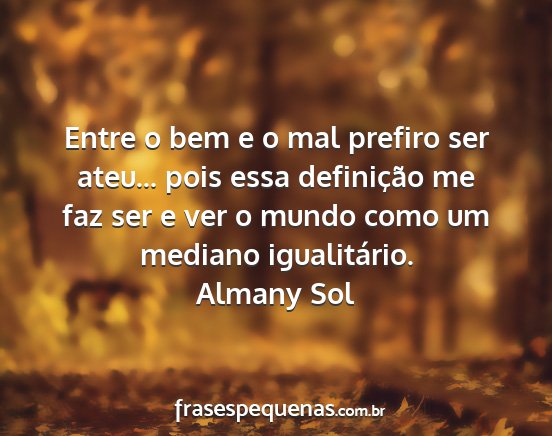 Entre o bem e o mal prefiro ser ateu... pois essa definição me faz ser e ver o mundo como um mediano igualitário.Almany Sol