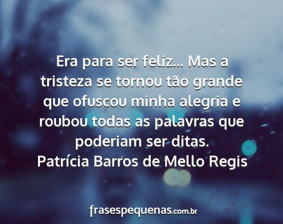 Era para ser feliz... Mas a tristeza se tornou tão grande que ofuscou minha alegria e roubou todas as palavras que poderiam ser ditas.Patrícia Barros de Mello Regis
