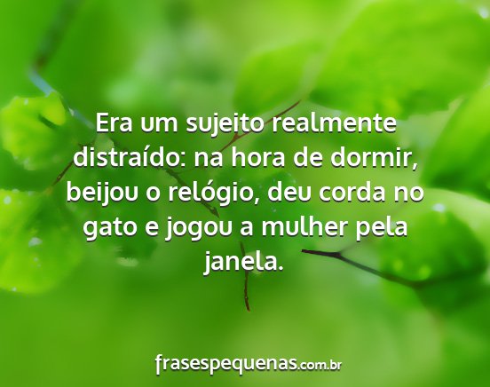Era um sujeito realmente distraído: na hora de dormir, beijou o relógio, deu corda no gato e jogou a mulher pela janela.