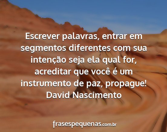Escrever palavras, entrar em segmentos diferentes com sua intenção seja ela qual for, acreditar que você é um instrumento de paz, propague!David Nascimento