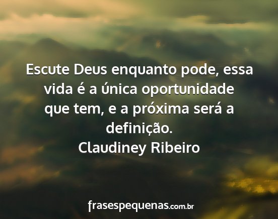 Escute Deus enquanto pode, essa vida é a única oportunidade que tem, e a próxima será a definição.Claudiney Ribeiro