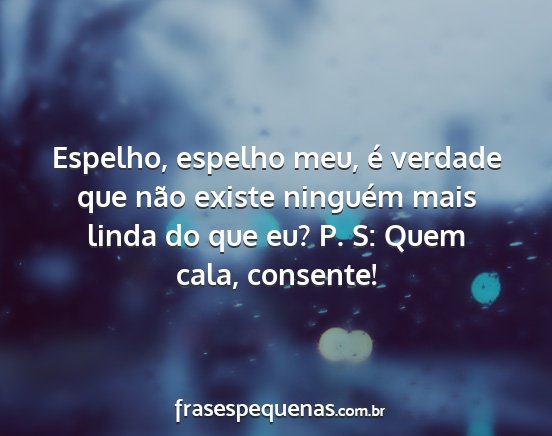 Espelho, espelho meu, é verdade que não existe ninguém mais linda do que eu? P. S: Quem cala, consente!