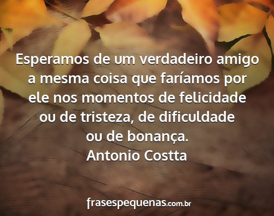 Esperamos de um verdadeiro amigo a mesma coisa que faríamos por ele nos momentos de felicidade ou de tristeza, de dificuldade ou de bonança.Antonio Costta