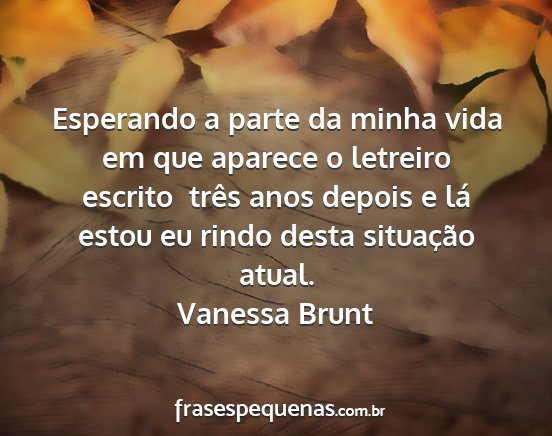 Esperando a parte da minha vida em que aparece o letreiro escrito três anos depois e lá estou eu rindo desta situação atual.Vanessa Brunt