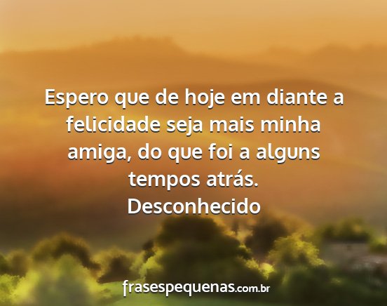 Espero que de hoje em diante a felicidade seja mais minha amiga, do que foi a alguns tempos atrás.Desconhecido