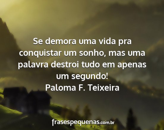 Se demora uma vida pra conquistar um sonho, mas uma palavra destroi tudo em apenas um segundo!Paloma F. Teixeira