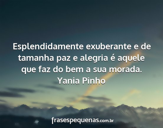 Esplendidamente exuberante e de tamanha paz e alegria é aquele que faz do bem a sua morada.Yania Pinho