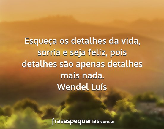 Esqueça os detalhes da vida, sorria e seja feliz, pois detalhes são apenas detalhes mais nada.Wendel Luís