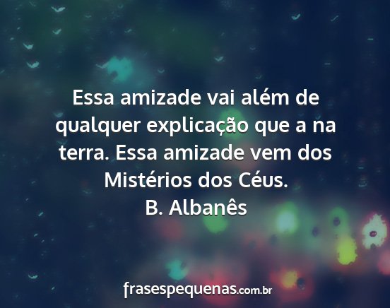 Essa amizade vai além de qualquer explicação que a na terra. Essa amizade vem dos Mistérios dos Céus.B. Albanês