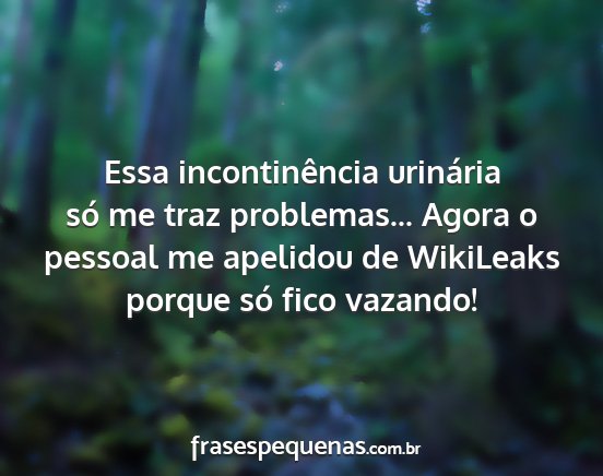 Essa incontinência urinária só me traz problemas... Agora o pessoal me apelidou de WikiLeaks porque só fico vazando!
