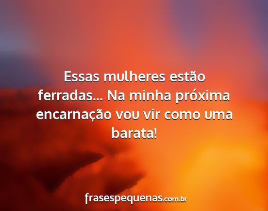 Essas mulheres estão ferradas... Na minha próxima encarnação vou vir como uma barata!