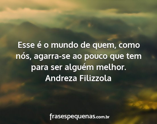Esse é o mundo de quem, como nós, agarra-se ao pouco que tem para ser alguém melhor.Andreza Filizzola