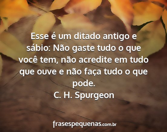 Esse é um ditado antigo e sábio: Não gaste tudo o que você tem, não acredite em tudo que ouve e não faça tudo o que pode.C. H. Spurgeon