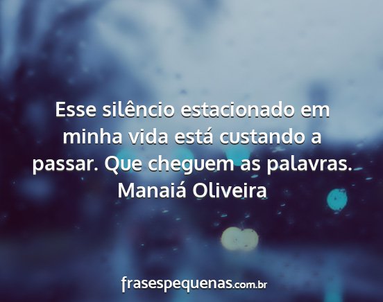 Esse silêncio estacionado em minha vida está custando a passar. Que cheguem as palavras.Manaiá Oliveira