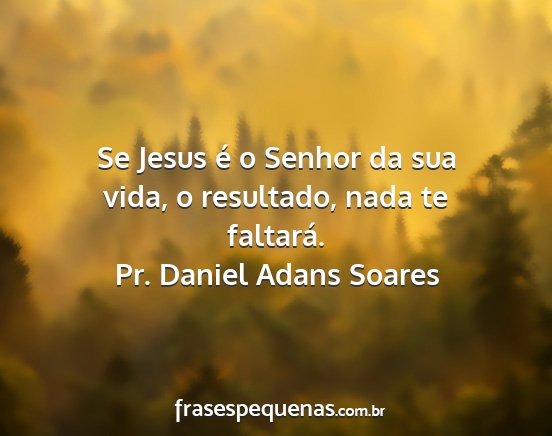 Se Jesus é o Senhor da sua vida, o resultado, nada te faltará.
