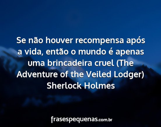 Se não houver recompensa após a vida, então o mundo é apenas uma brincadeira cruel (The Adventure of the Veiled Lodger)Sherlock Holmes