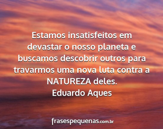 Estamos insatisfeitos em devastar o nosso planeta e buscamos descobrir outros para travarmos uma nova luta contra a NATUREZA deles.Eduardo Aques