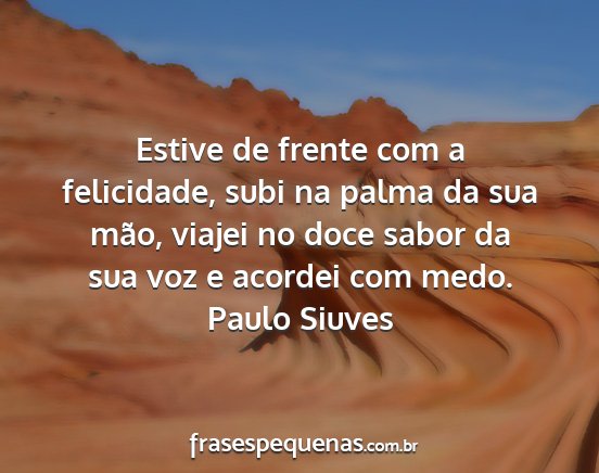 Estive de frente com a felicidade, subi na palma da sua mão, viajei no doce sabor da sua voz e acordei com medo.Paulo Siuves
