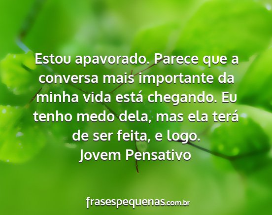 Estou apavorado. Parece que a conversa mais importante da minha vida está chegando. Eu tenho medo dela, mas ela terá de ser feita, e logo.Jovem Pensativo