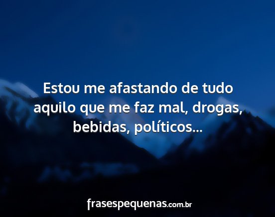 Estou me afastando de tudo aquilo que me faz mal, drogas, bebidas, políticos...