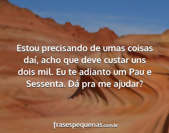Estou precisando de umas coisas daí, acho que deve custar uns dois mil. Eu te adianto um Pau e Sessenta. Dá pra me ajudar?