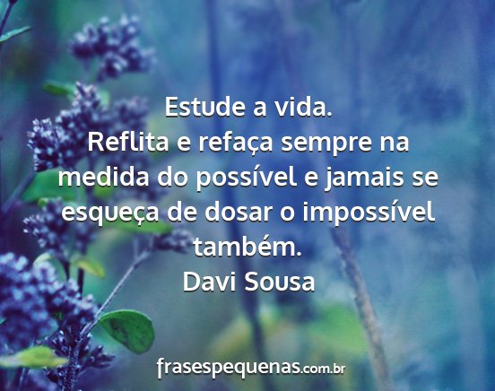 Reflita e refaça sempre na medida do possível e jamais se esqueça de dosar o impossível também.Davi Sousa