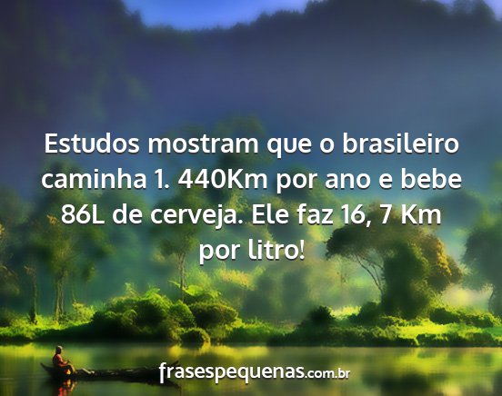Estudos mostram que o brasileiro caminha 1. 440Km por ano e bebe 86L de cerveja. Ele faz 16, 7 Km por litro!