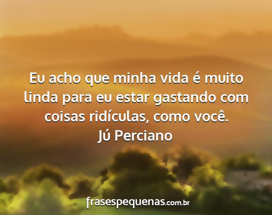 Eu acho que minha vida é muito linda para eu estar gastando com coisas ridículas, como você.Jú Perciano
