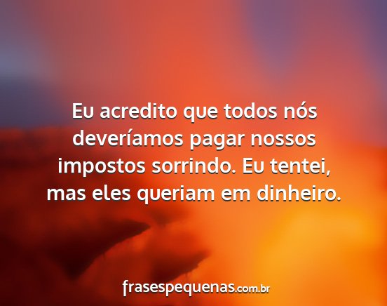 Eu acredito que todos nós deveríamos pagar nossos impostos sorrindo. Eu tentei, mas eles queriam em dinheiro.