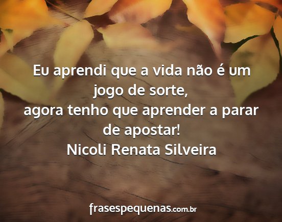 agora tenho que aprender a parar de apostar!Nicoli Renata Silveira