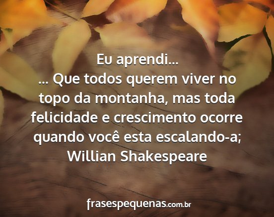 ... Que todos querem viver no topo da montanha, mas toda felicidade e crescimento ocorre quando você esta escalando-a;Willian Shakespeare