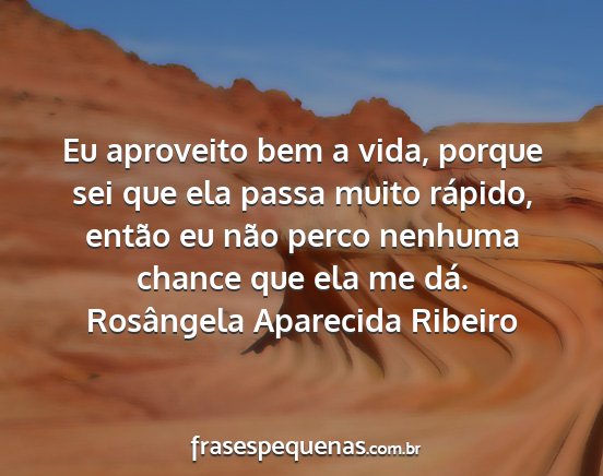 Eu aproveito bem a vida, porque sei que ela passa muito rápido, então eu não perco nenhuma chance que ela me dá.Rosângela Aparecida Ribeiro