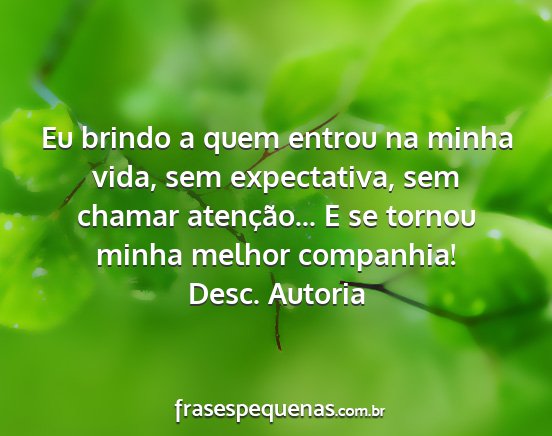 Eu brindo a quem entrou na minha vida, sem expectativa, sem chamar atenção... E se tornou minha melhor companhia!Desc. Autoria