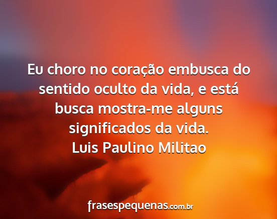 Eu choro no coração embusca do sentido oculto da vida, e está busca mostra-me alguns significados da vida.Luis Paulino Militao
