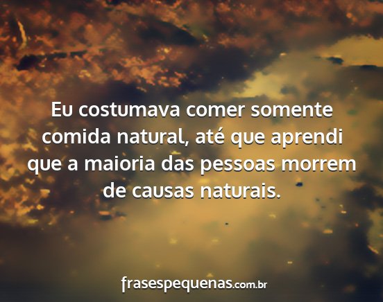 Eu costumava comer somente comida natural, até que aprendi que a maioria das pessoas morrem de causas naturais.