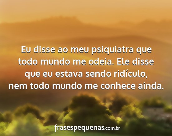 Eu disse ao meu psiquiatra que todo mundo me odeia. Ele disse que eu estava sendo ridículo, nem todo mundo me conhece ainda.