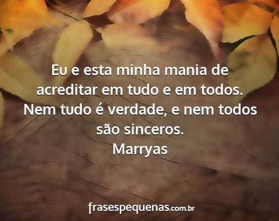 Eu e esta minha mania de acreditar em tudo e em todos. Nem tudo é verdade, e nem todos são sinceros.Marryas