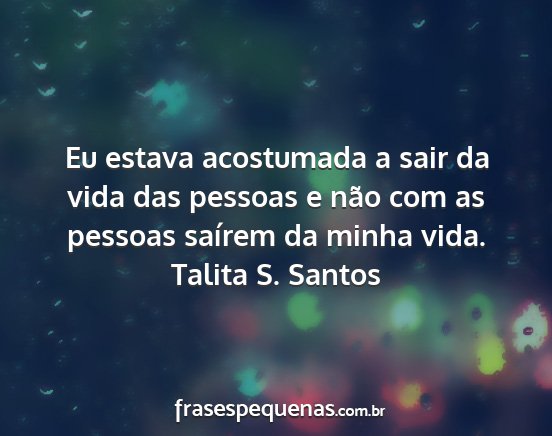 Eu estava acostumada a sair da vida das pessoas e não com as pessoas saírem da minha vida.Talita S. Santos