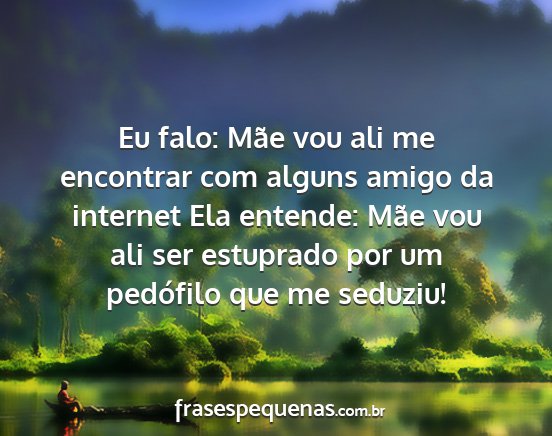 Eu falo: Mãe vou ali me encontrar com alguns amigo da internet Ela entende: Mãe vou ali ser estuprado por um pedófilo que me seduziu!
