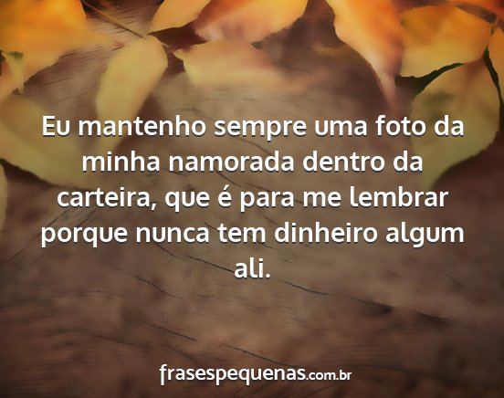 Eu mantenho sempre uma foto da minha namorada dentro da carteira, que é para me lembrar porque nunca tem dinheiro algum ali.