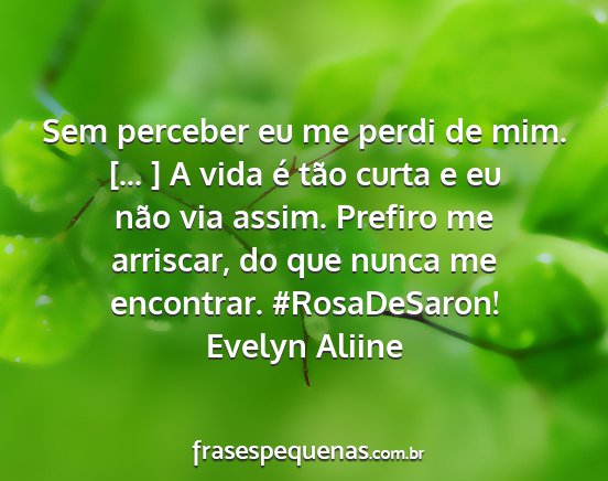 Sem perceber eu me perdi de mim. [... ] A vida é tão curta e eu não via assim. Prefiro me arriscar, do que nunca me encontrar. #RosaDeSaron!Evelyn Aliine