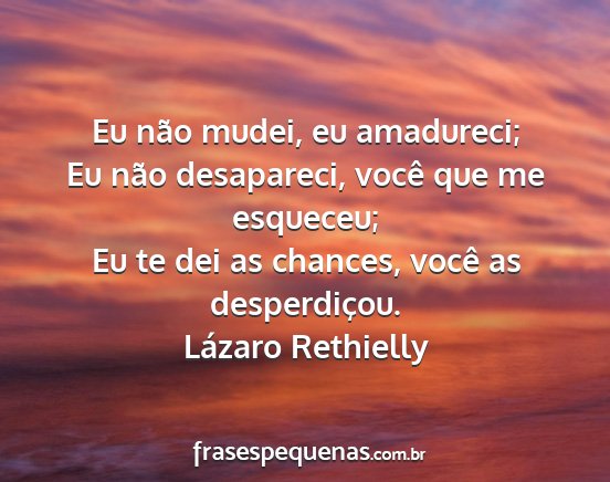 Eu te dei as chances, você as desperdiçou.Lázaro Rethielly