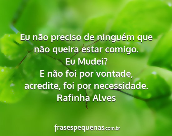 E não foi por vontade, acredite, foi por necessidade.Rafinha Alves