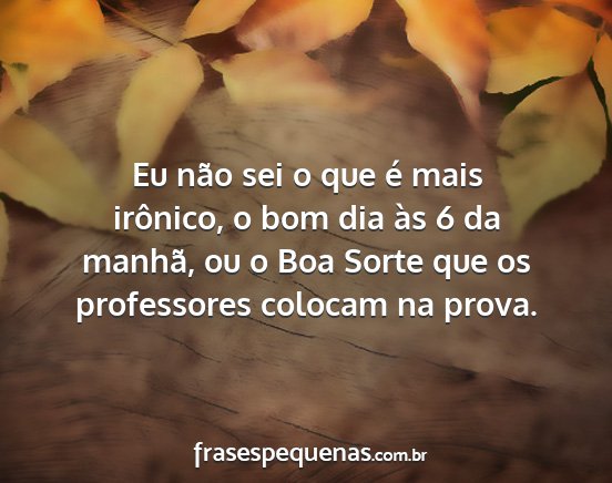 Eu não sei o que é mais irônico, o bom dia às 6 da manhã, ou o Boa Sorte que os professores colocam na prova.