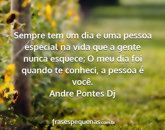 Sempre tem um dia e uma pessoa especial na vida que a gente nunca esquece; O meu dia foi quando te conheci, a pessoa é você.Andre Pontes Dj