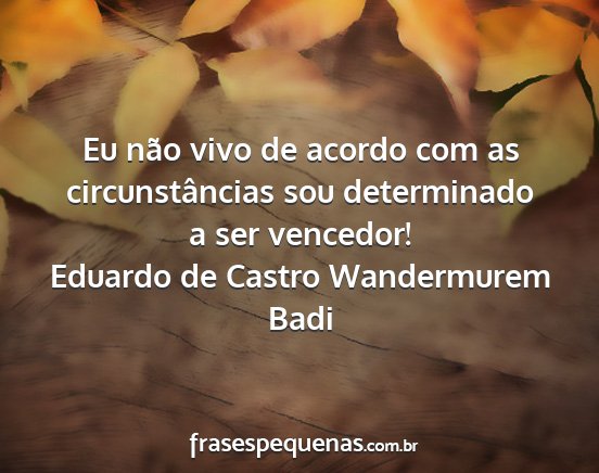 Eu não vivo de acordo com as circunstâncias sou determinado a ser vencedor!Eduardo de Castro Wandermurem Badi