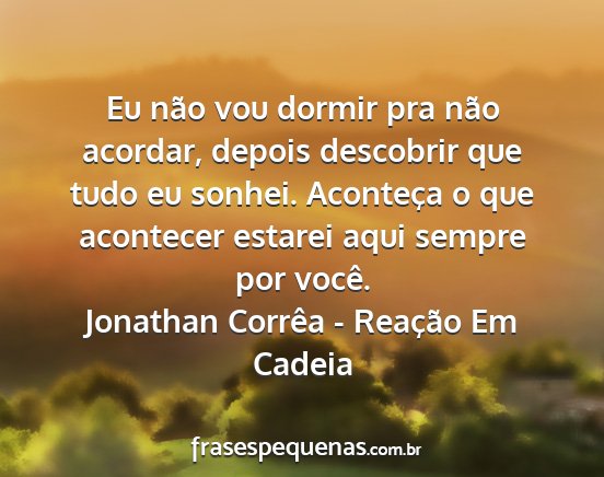 Eu não vou dormir pra não acordar, depois descobrir que tudo eu sonhei. Aconteça o que acontecer estarei aqui sempre por você.Jonathan Corrêa - Reação Em Cadeia