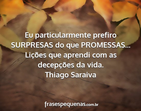Eu particularmente prefiro SURPRESAS do que PROMESSAS... Lições que aprendi com as decepções da vida.Thiago Saraiva