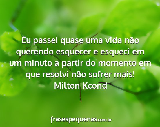 Eu passei quase uma vida não querendo esquecer e esqueci em um minuto a partir do momento em que resolvi não sofrer mais!Milton Kcond