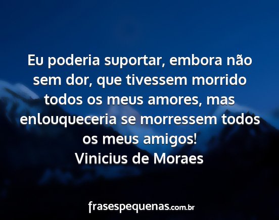 Eu poderia suportar, embora não sem dor, que tivessem morrido todos os meus amores, mas enlouqueceria se morressem todos os meus amigos!Vinicius de Moraes